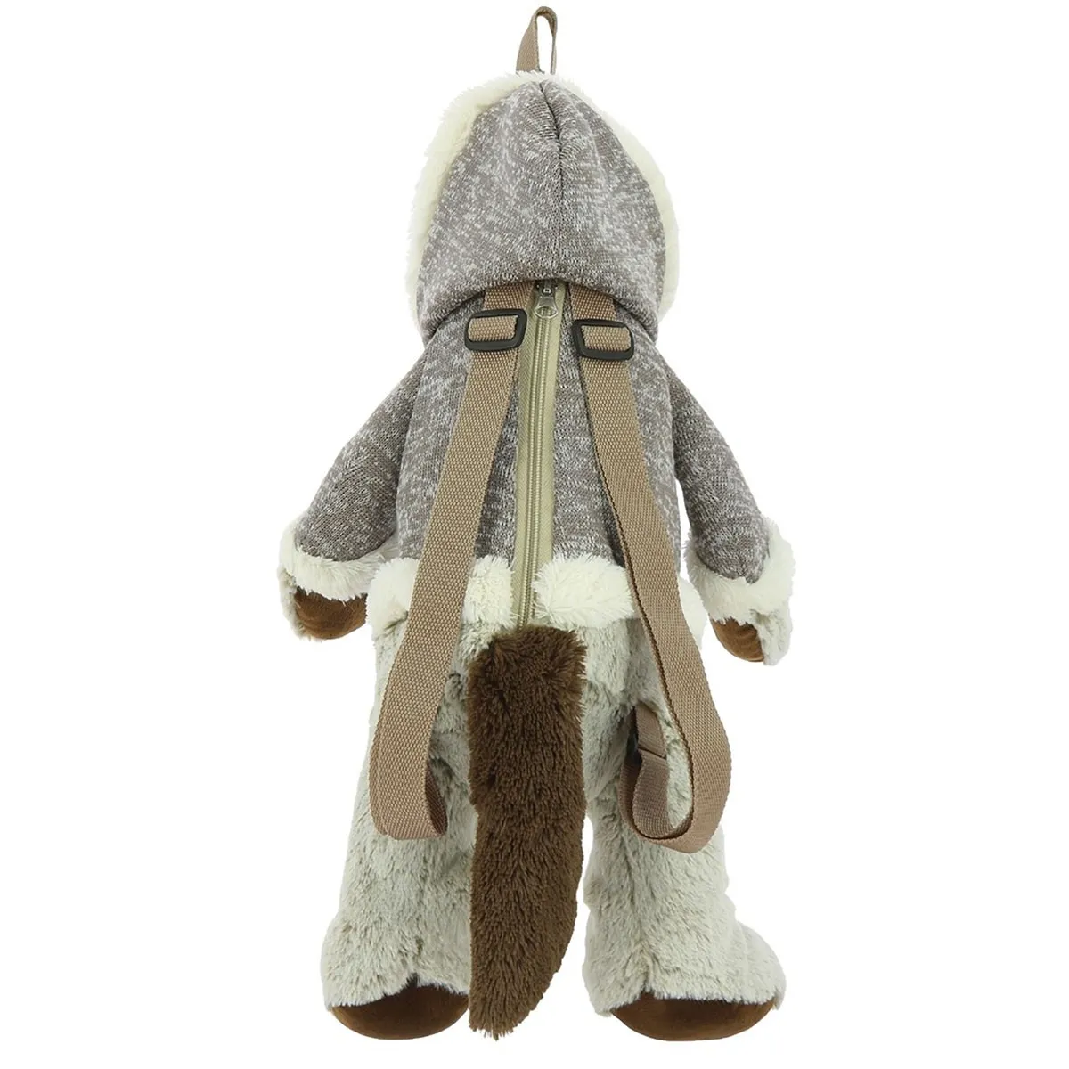 A cute and charming backpack with adjustable shoulder straps of a plush horse wearing a mottled brown hoodie. Backpack ize (zip length) approx 20 cm. Total size ears to hooves approx 50cm. Composition: polyester.