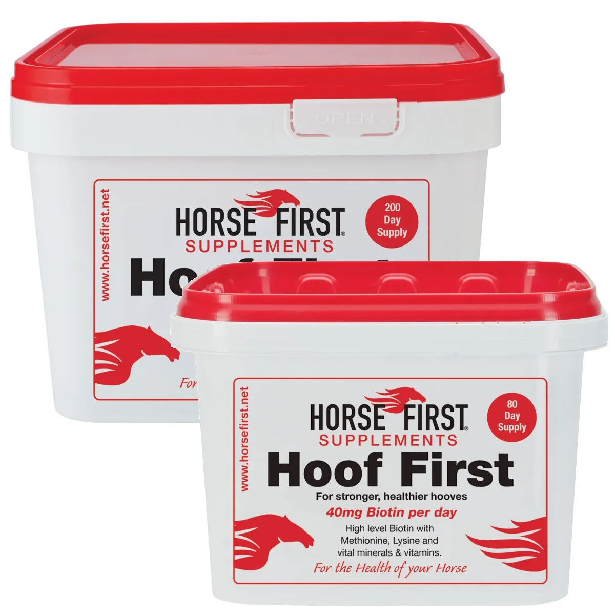 The unique formula of Horse First Hoof First contains high strength Biotin with all the essential vitamins and minerals to produce a healthy hoof. It is well known that Biotin will grow horn and Hoof First has 40mg of biotin per 25g dose which combined with a number of other proven ingredients are all balanced to ensure maximum results to obtain strong, healthy hooves with continuous growth.