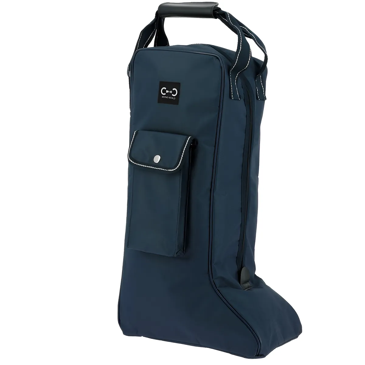 Protect your long riding boots with this practical and stylish navy boots bag from Riding World. Made from durable nylon, it features a full-length zip for easy access, a side pocket with press-button fastening for accessories, and strong nylon handles for carrying. The base is fitted with four plastic feet to keep the bag off the ground and help prevent dirt or damp from transferring.